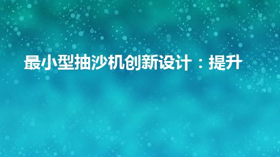 電抽沙機革新設計,提升效率!沙設備關鍵詞解析及市場前景探索
